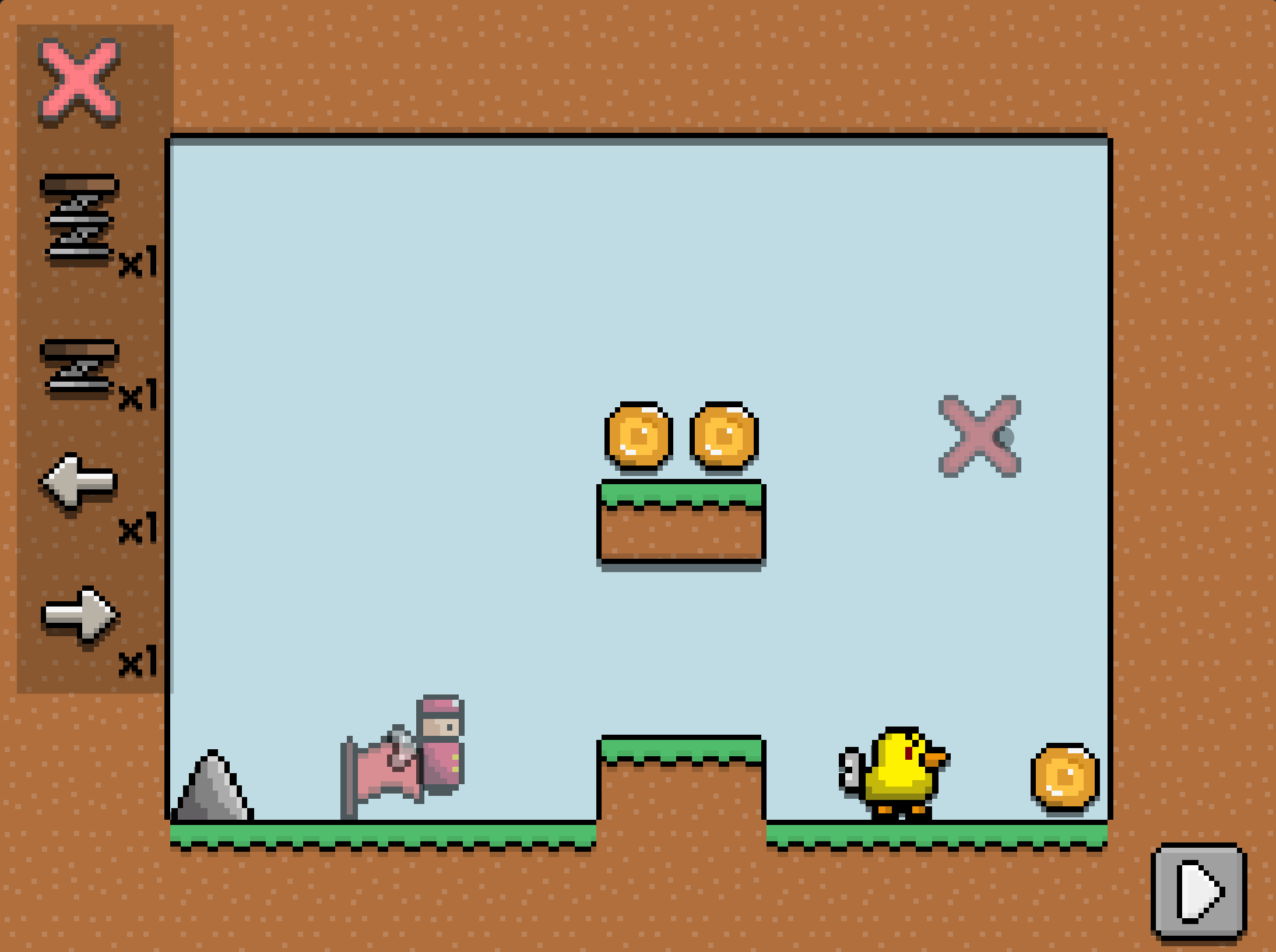 You are playing with an old windup toy soldier you got from your grandpa on your birthday. Since then, you haven’t been able to stop playing with it, even with its simplicity. You’ve set up a few looping obstacle courses, and you want to make the soldier complete them. But since the soldier only moves forward, you need to place other objects you’ve found lying around the house, like springs and arrows, to control it.
